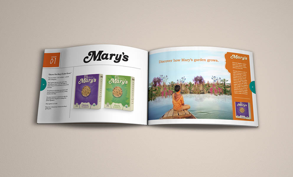 Celebrating 10 years of making organic gluten free crackers, Mary’s embraced the idea of strengthening their positioning and packaging system to elevate the spirit of conscious eating throughout new and existing product lines.At the RFP stage, I worked with a small cross functional team determined to showcase our creative capacity to ultimately win MKTG’s first CPG account. In a few weeks, three new creative directions were developed each with it’s own: brand name, logo, packaging system, and experiential marketing campaign. MKTG was awarded the account and successfully launched a new packaging system. I look forward to seeing Mary’s grow into an even more iconic brand within the social impact space.